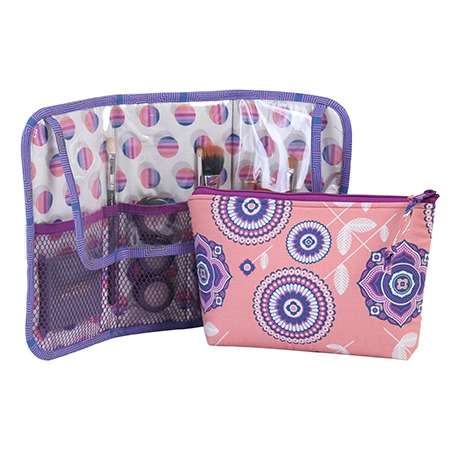 Carry your must-have makeup, brushes, tools, toiletries, and more wherever you roam! Fast and easy to make, Glo and Go makes a great gift, too! Men and women, boys and girls ? all will appreciate this handy set that makes travel and organization a breeze! This handy folding wrap with strap closure and coordinating zippered bag make it easy to store and organize all your essentials in style.