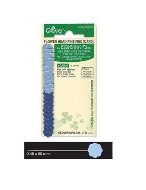 Flower Head Pins are suitable for pinning thin fabrics. The flat head is convenient for machine stitching. The head is not heat-resistant. Do not apply iron directly. 20 pins per card. Size: 0.45 x 50mm