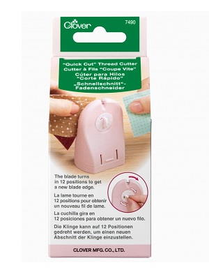 The Quick Cut Thread Cuttter allows you to quickly and easily separate your quilt chain pieces. The dial allows you to move the blade 12 points to get that sharp blade edge as needed. The Quick Cut Thread Cutter uses Clover's 45mm Rotary Cutter blade (Order Code: CV7508), meaning that there are no speciality blades needed.