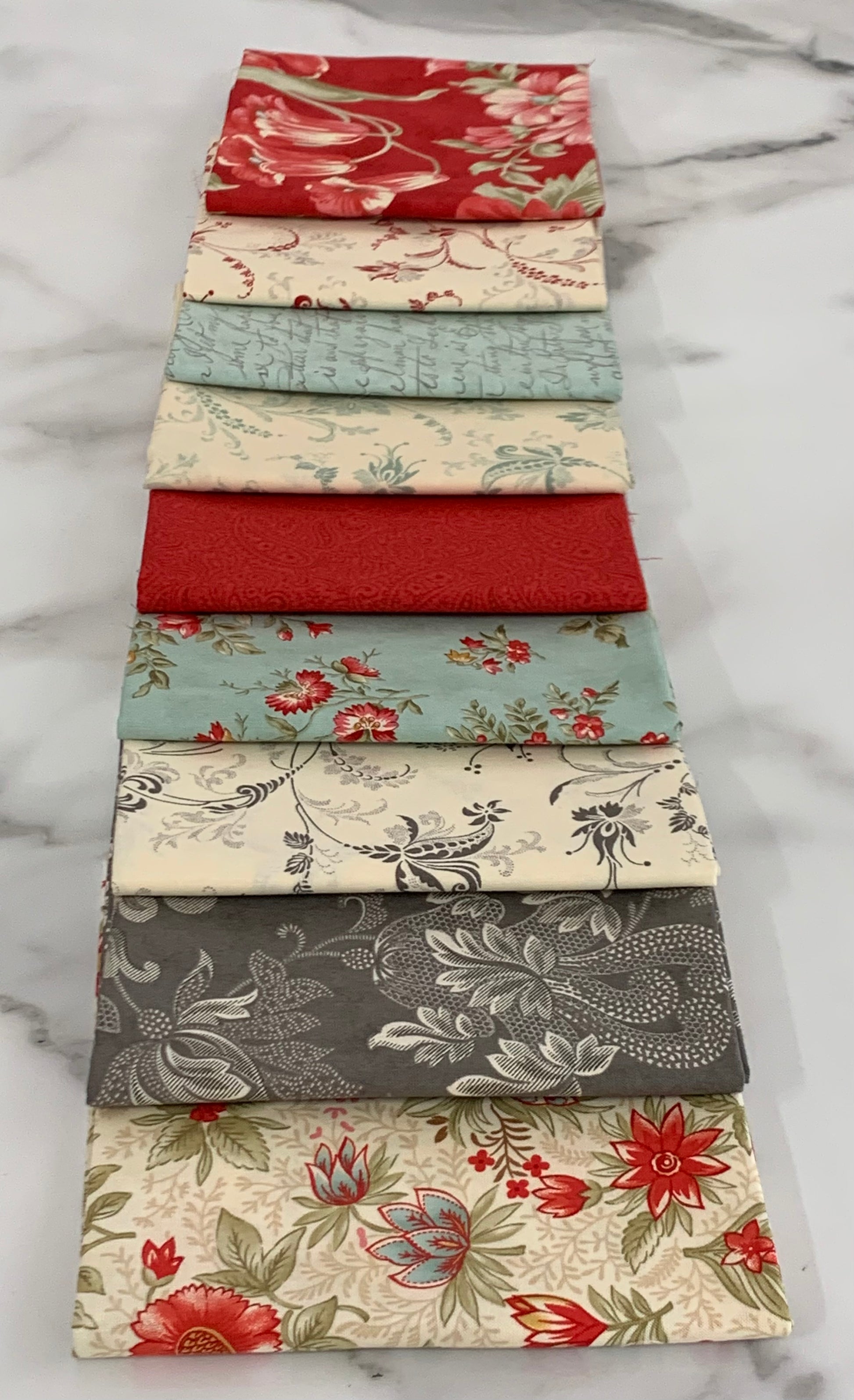 9 Fat 1/4's. Each measuring 50cm x 56cm