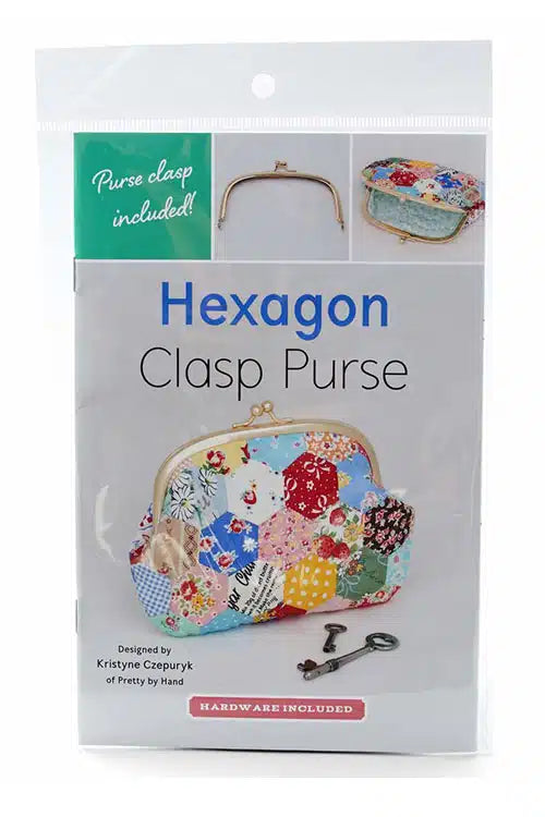 Use English paper piecing to construct this adorable hexagon purse. This sweet clutch is the perfect size for storing cosmetics, money, and other essentials.