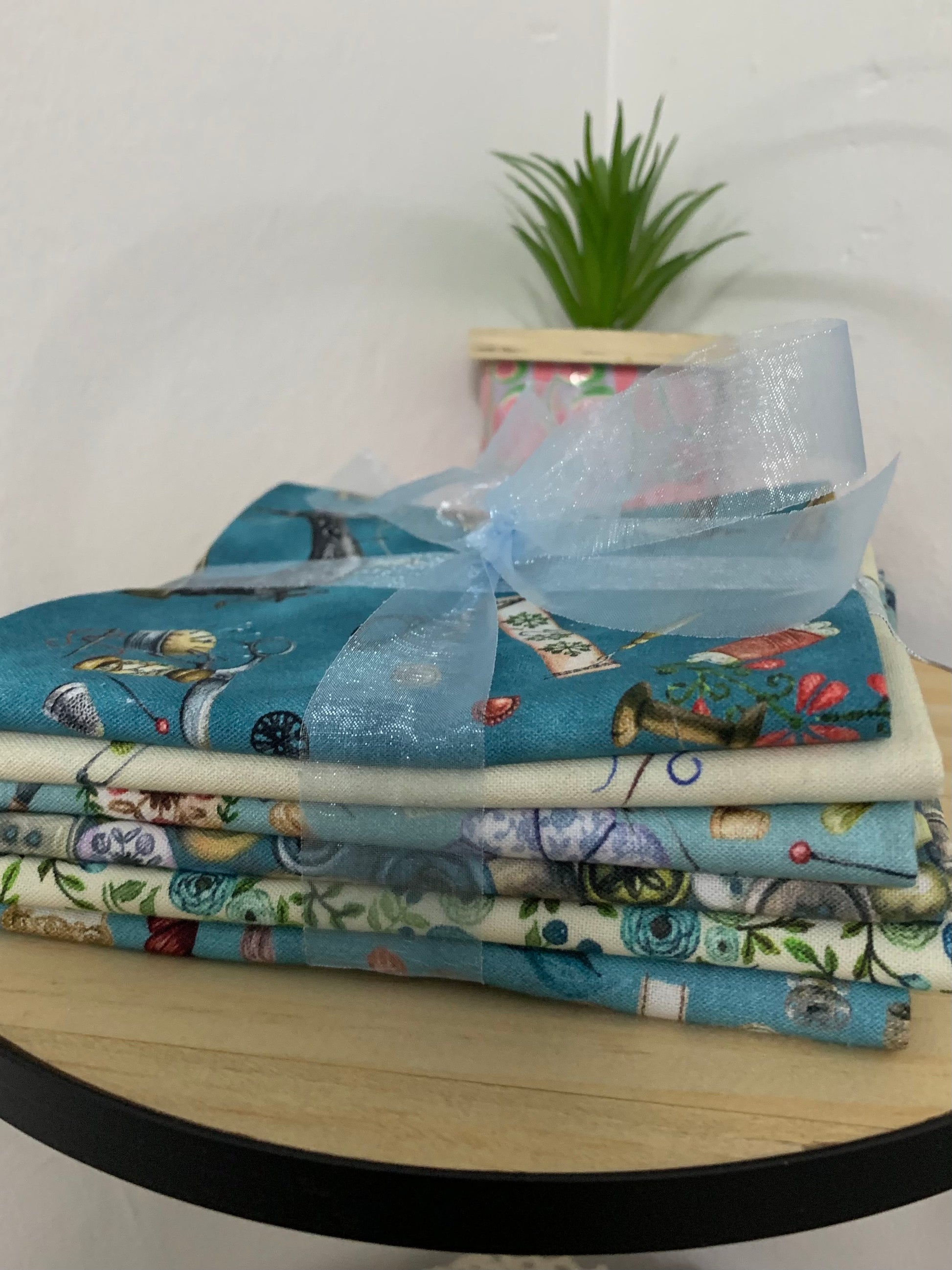 Maximize your sewing projects with the MAKE IT SEW FAT 1/4 BUNDLE. This bundle includes 6 FAT 1/4s, each measuring 50cm x 56cm, featuring sewing essentials such as buttons, threads, and sewing machines. Craft with confidence and efficiency using this bundle.