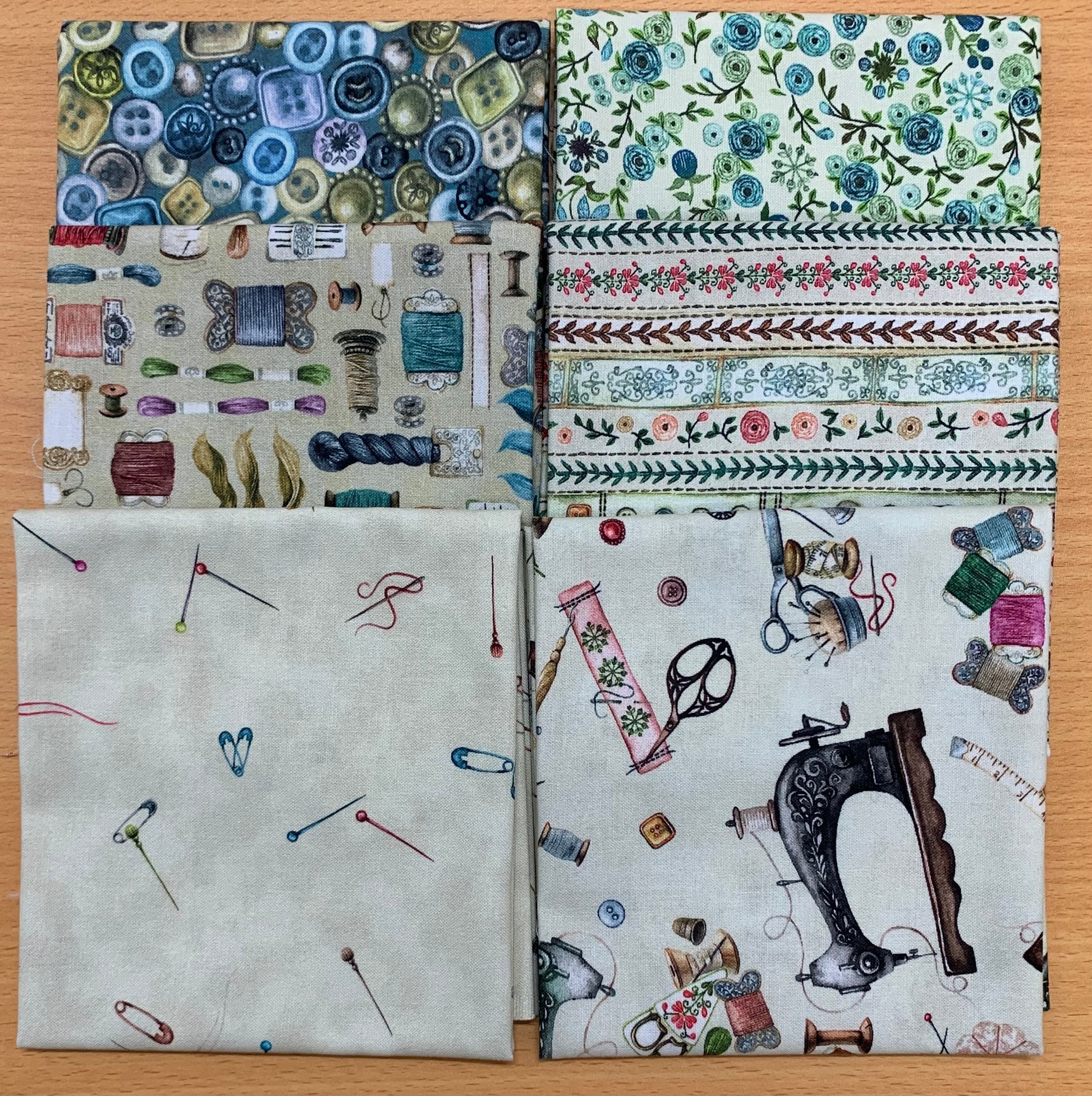 Maximize your sewing projects with the MAKE IT SEW FAT 1/4 BUNDLE. This bundle includes 6 FAT 1/4s, each measuring 50cm x 56cm, featuring sewing essentials such as buttons, threads, and sewing machines. Craft with confidence and efficiency using this bundle.