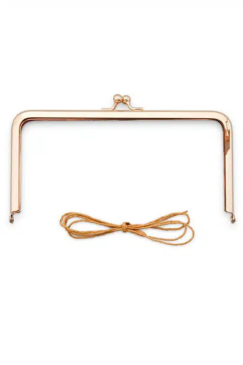 One 7″ x 3 ½” (18 x 9 cm) rose gold clasp. Use this refill clasp for making multiples of the Kiss Clasp Sewing Box (Item #ZW2583) or design your own pattern. This is a glue-in clasp and includes paper string for easy installation.