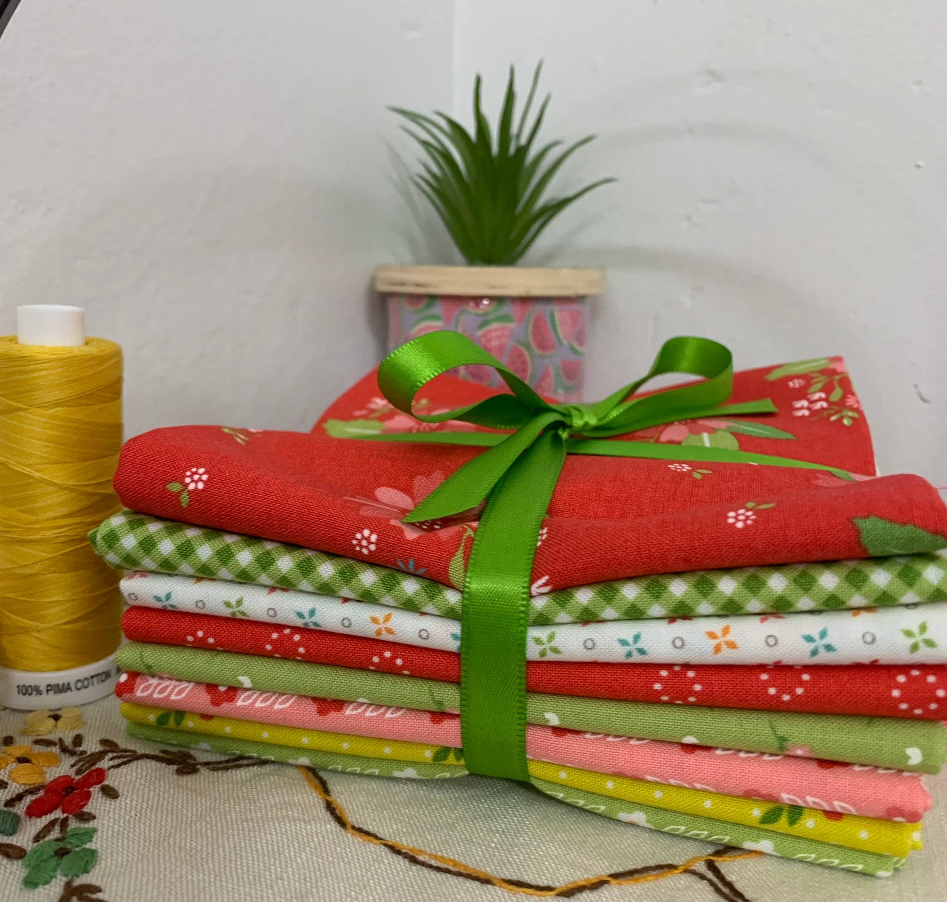Enhance your quilting with the Strawberry Lemonade Pack 2. Designed with a FAT 1/4 bundle of 8 stunning prints, this pack is perfect for adding a fruity pop to your creations.