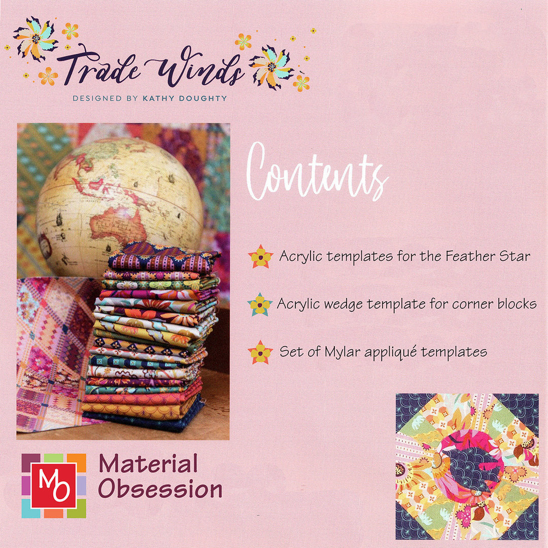 The set includes Acrylic templates for the Feather Star, Acrylic wedge template for corner blocks and set of mylar appliqué templates.