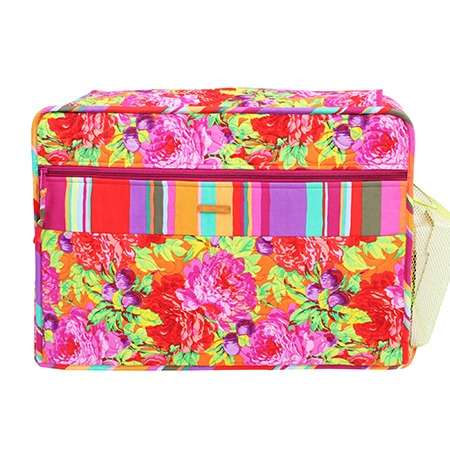 Protect your cherished sewing machine with its own quilt! Each cover features slip pockets on front and back, a zippered pocket on the left side, and a mesh slip pocket on the right side. For easy access to the sewing machine handle, there is an opening at the top. Flaps with magnetic snaps cover the opening. The pattern includes complete step-by-step instructions for covers in three sizes to fit many popular machines: