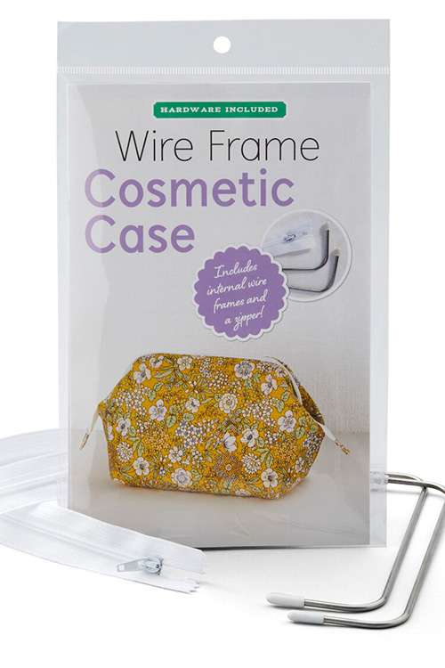 Finished Size: 8″ wide x 6 ¼” tall x 4 ¾” deep (20 cm wide x 16 cm tall x 12 cm deep). Pattern includes one 7″ x 2″ (18 x 5 cm) internal wire frame set and one 16″ (40 cm) white zipper to make the case.