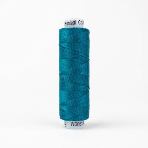 Konfetti is a 50wt, 3 ply double-gassed and mercerized Eqyptian cotton with a gorgeously soft, clean/ and lustrous finish. Free of any type of wax or coating that can cause build up in machines, this super low lint thread is a popular choice for quilting and long arming due to its quality finish and low bulk.